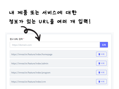 📌 Tip: 상세 페이지 또는 랜딩 페이지 URL을 입력하면 더욱 효과적인 결과를 얻을 수 있어요!